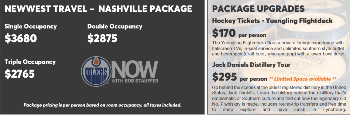 Newwest Travel - Oilers Now Nashville Trip Includes: